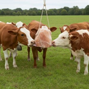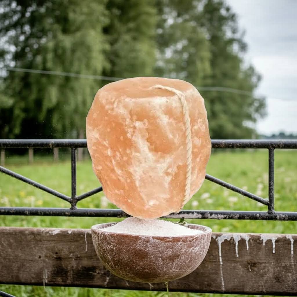 Salt Licking Block For Cattle: Pure Himalayan pink salt is shaped into a cylindrical shape with a hole running in the center for a secure rope placement to create an animal-licking salt block